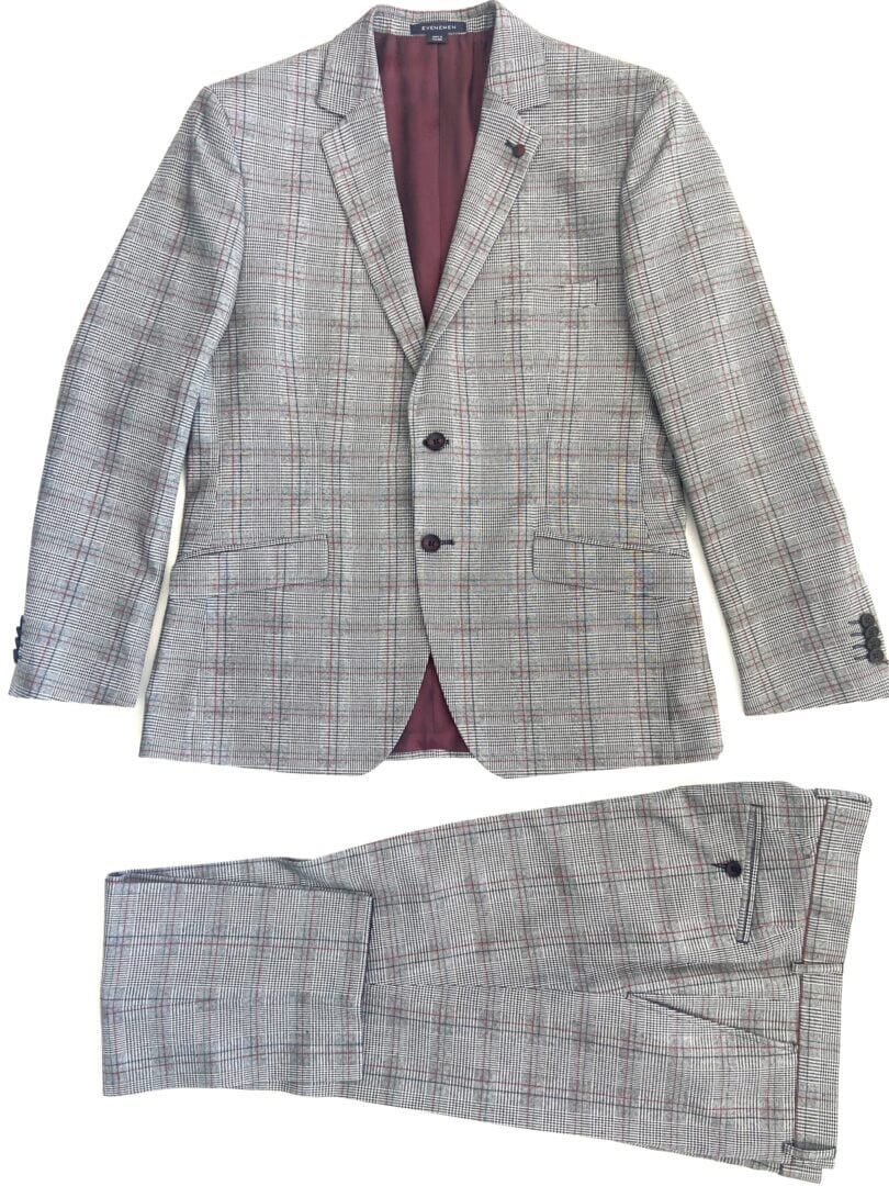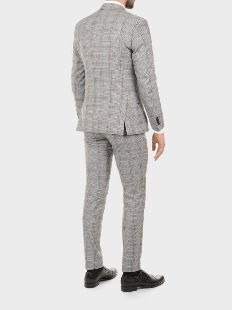 The real charm of the classic Prince of Wales overcheck motif. Light grey with thin threads of red bright color. The horizontal and vertical lines match up exactly. This classic blend of colors is great for anyone looking for a more conservative, timeless look. For both formal and informal occasions, all-year wear.